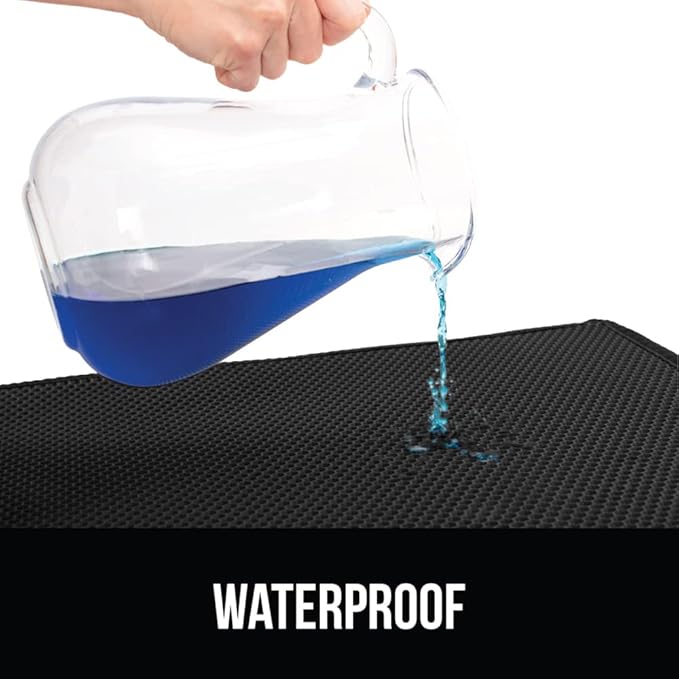 GORILLA GRIP Honeycomb Cat Litter Box Mat, 35x24 Two Layer Trapping Waste Mats, Soft On Paws, Litter Box Supplies and Essentials for Indoor Cats, Traps Excess, Water Resistant for Floors, Black