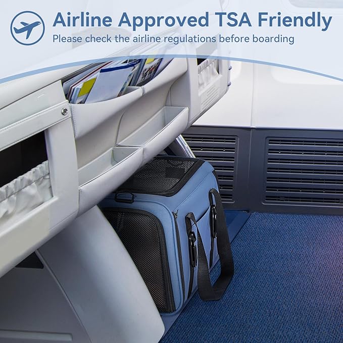 PETSFIT Cat Car Carrier for Small/Medium Cats Dogs, 18"x11"x11" Airline Approved Cat Carrier, with Patent Safety Buckles and Escape-Proof Zipper - Safeguarding Car Travel, Airplane, Vet, Outdoor