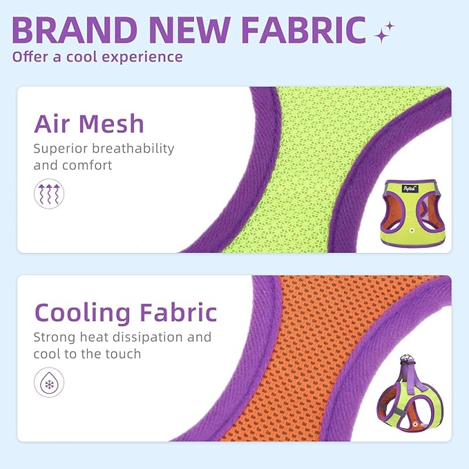 - [REFLECTIVE, SOLID PATTERN] - This Harness has two sides of reflective straps, so if you walk with your dog at night, then both of you will be safer! In addition, our stylish harness in bright colors will make your dog stand out on summer camps, beach photoshoots, picnics, walks, and hikes, all while keeping them cool.