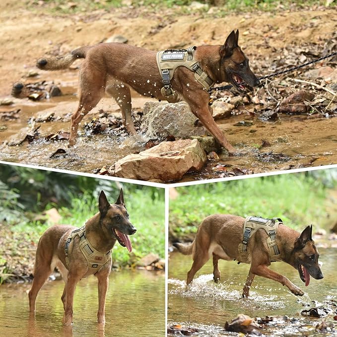- MOLLE System: Featuring multiple Hook & Loop panels and additional MOLLE straps, our tactical harness can carry a variety of equipment, including pouches, water bottles, and tactical dog gear. It's versatile for personal service, law enforcement, hunting, or outdoor adventures. This system also shows your dog's personality; the package includes an extra "BEST FRIEND" label for customization