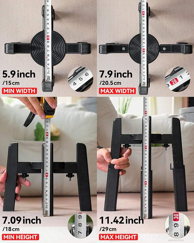 - [Adjustable Height & Width] Most of the stands on the market are only adjustable in height or width. But CZPET pet bowl stand has both adjustable height from 7.09-11.42 inches (with adjustable legs), and width 5.9 to 7.9 inches. And we have easy design for you to adjust conveniently. Just one CZPET stand is enough to accompany the growth of your dear pets