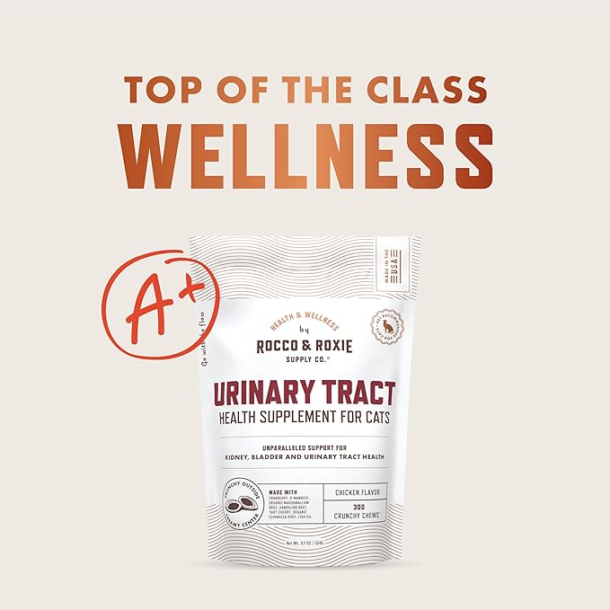Rocco & Roxie Cat Urinary Tract Health Supplement, Cranberry and D-Mannose for Kidney, Bladder, and UT Support, Vet Recommended Chicken Flavored Crunchy Chews Cats Love, Made in USA