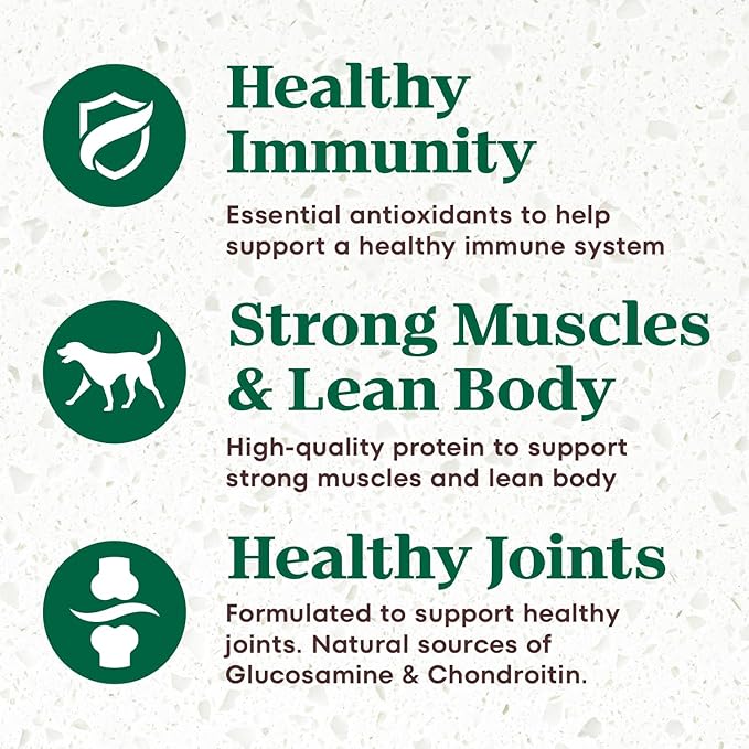 - Healthy Joints: This dry senior dog food is formulated with natural sources of Glucosamine and Chondroitin to support healthy joints