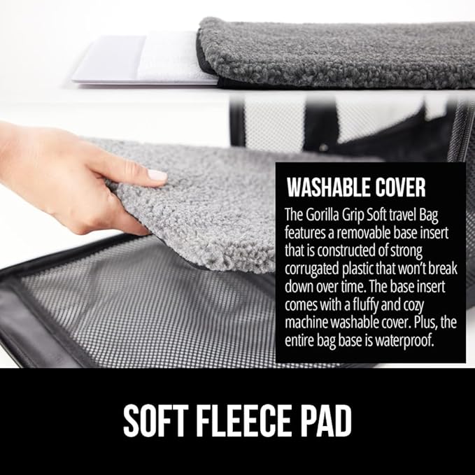 GORILLA GRIP Cat Carrier Travel Bag Up to 15 Lbs, Soft Collapsible Small Dog Carriers, Top and Side Entry Breathable Mesh, Grip Feet on Underside, Cozy Washable Waterproof Pad, Portable Kennel, Black