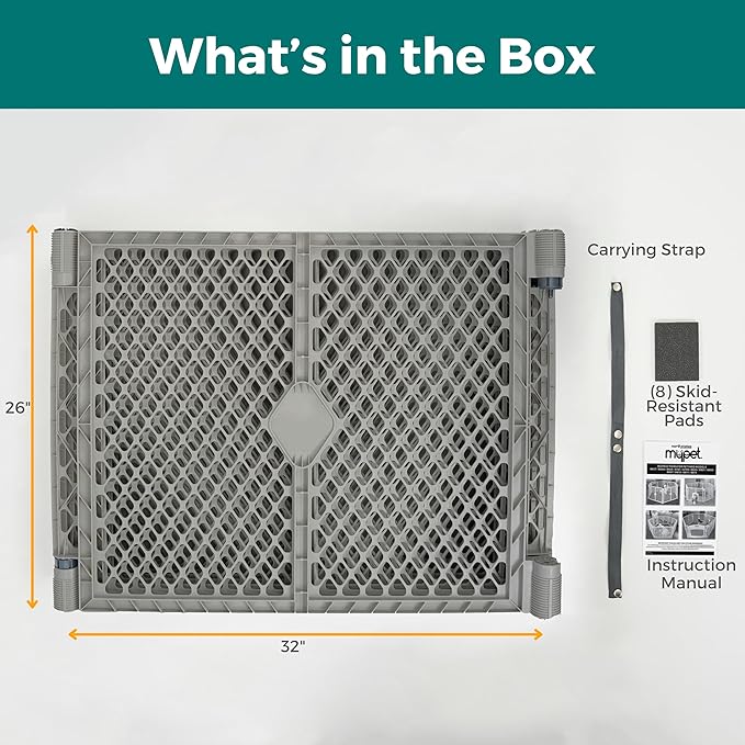 - [Worry-Free Safety]: MyPet 4-Panel Petyard Plus is a versatile outdoor or indoor dog fence with a walk-through door. Comes in an attractive fieldstone finish that fits flawlessly with any décor.