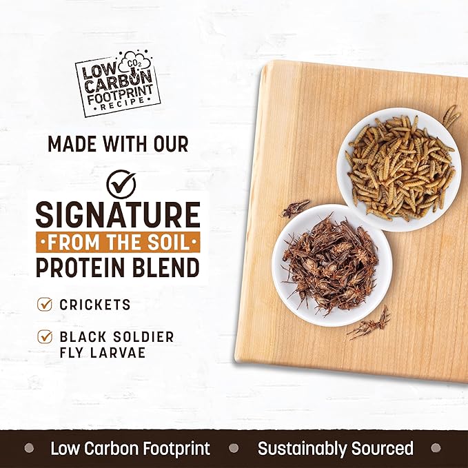 - POWERFUL PROTEIN SOURCES: Includes protein-rich dried crickets and black soldier fly larvae. Great for dogs with food allergies and rotational feeding. This low carbon footprint food is also great for the planet