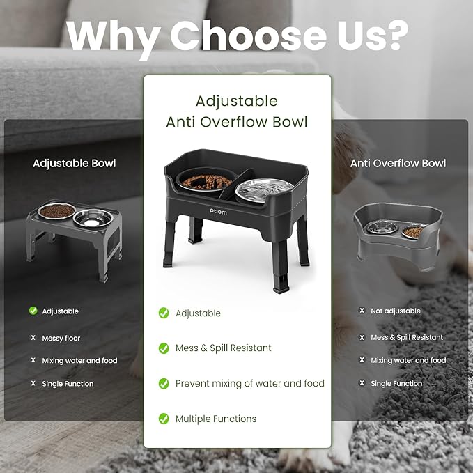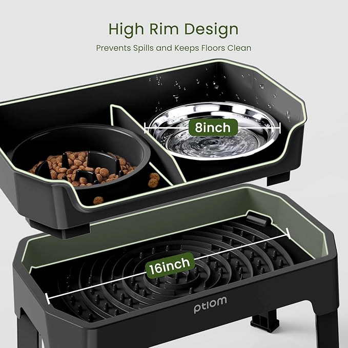 - 4-IN-1 ELEVATED DOG BOWLS: Our upgraded raised dog bowl can adjust height, has a liftable extra-large lick plate with slow feeder functionality. Excellent spill and mess protection. Slow feeder and water bowl set ideal for medium and big dogs or families with multiple pets.