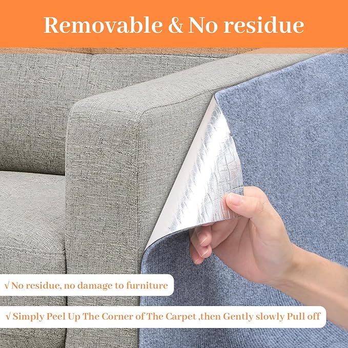 Uranshin Cat Scratch Mat,Trimmable Self-Adhesive Cat Scratch Furniture Protector Cat Scratching Post Carpet Covered 78.7"x15.8" Cat Couch Protector from Cat Claws (Light Grey)