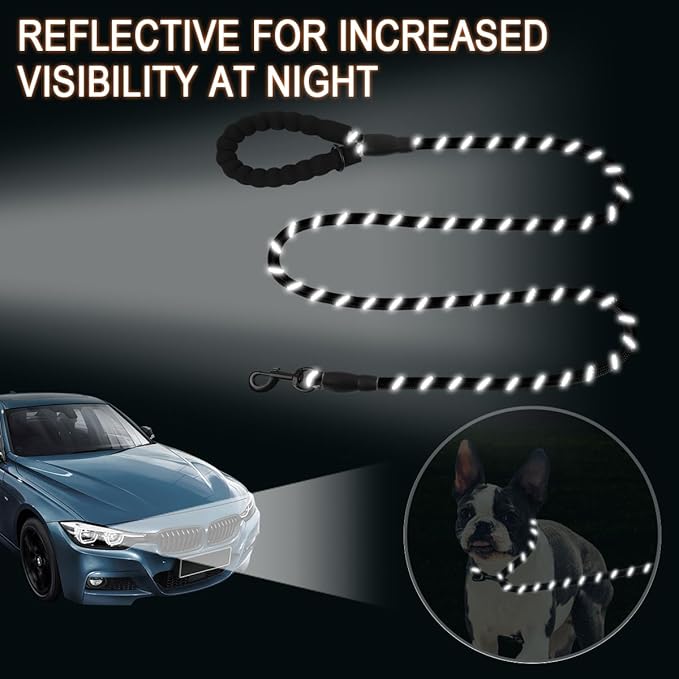 BARKBAY Dog Leashes for Large Dogs Heavy Duty Dog Leash 4/5/6 FT with Comfortable Padded Handle and Highly Reflective Threads for Medium Large Dogs Walking Training Running (6FT-1/2'',Black)