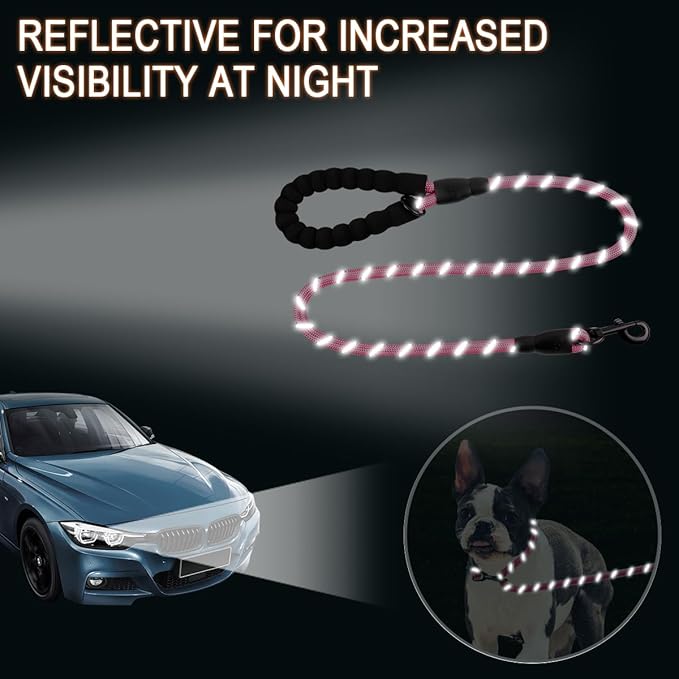 BARKBAY Dog Leashes for Large Dogs Heavy Duty Dog Leash 4/5/6 FT with Comfortable Padded Handle and Highly Reflective Threads for Medium Large Dogs Walking Training Running (4FT-1/2'',Pink)