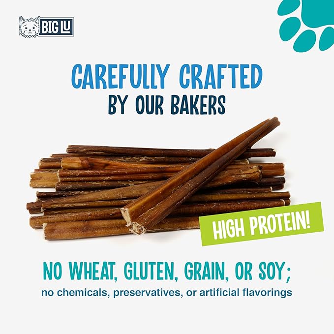 Big Lu - 12” Regular Bully Sticks, 12 Count, 100% Grass-Fed Beef Chews, Fully Digestible, Long-Lasting Treats for Aggressive Chewers, Natural Single-Ingredient Chews for Puppies and Small Dogs