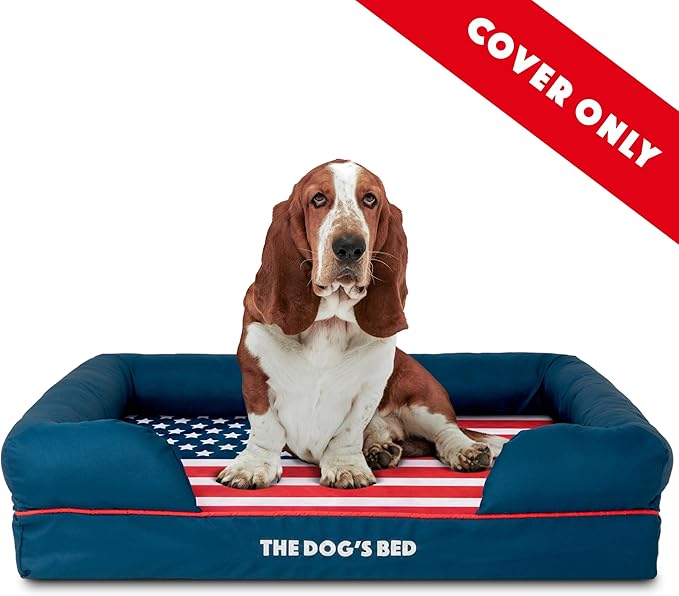 - Replacement Outer Cover ONLY (OUTER COVER ONLY - NO BED, NO WATERPROOF INNER) For The Dog's Bed Orthopedic Memory Foam Dog Bed. Washable Oxford Fabric, Large: Size 36 x 27 x 4 inches with 9 inch bolster sides (Blue with Red Piping USA Embroidery Flag & Centre Flag)