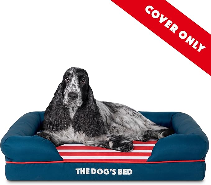 - Replacement OUTER Cover (OUTER ONLY - NO BED) for The Dog's Bed Orthopedic Memory Foam Dog Bed. Washable Oxford Fabric, Medium: Size 30 x 23.5 x 3 inches with 7.5 inch bolster sides (Blue with Red Piping USA Embroidery Flag & Centre Flag)