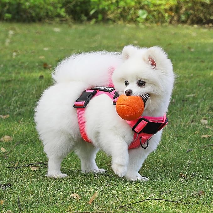 - 【 Prevent Pulling and Choke 】-The Demigreat dog harness has three metal traction rope loops, which are located on the back and chest, and are equipped with a reinforced webbing .The front clamp prevents your dog from pulling when walking, perfect for dogs training or dogs that tend to pull. The rear clip can make the dog walk or jog easily. This special design can evenly distribute the pulling force on the body to prevent suffocation or neck strain, offers much more comfort and security.