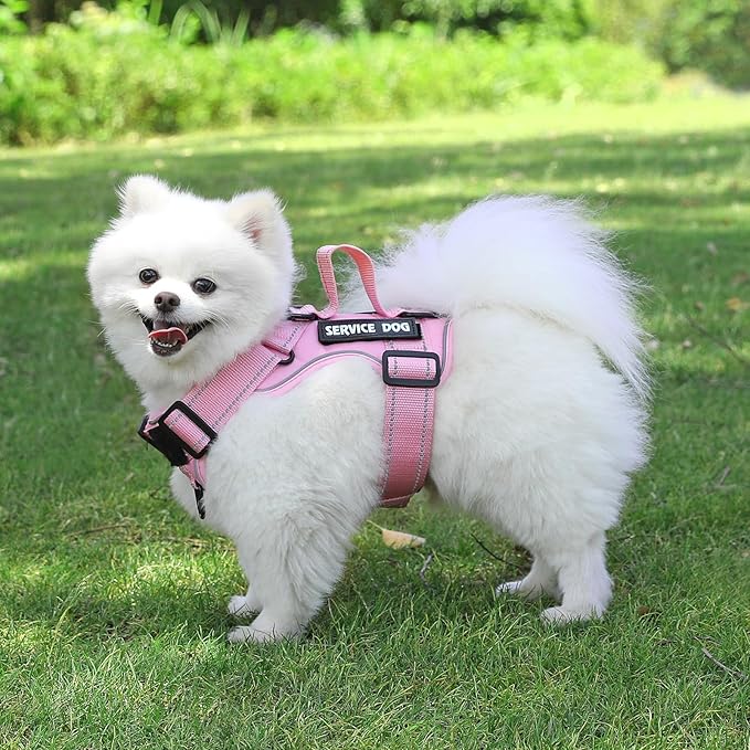 - 【Reflective Dog Harness】- The reflective tape of the Damigreat dog harness can reflect ambient light in extreme low light conditions, so as to ensure that your dog can stay visible even when walking or running at night, and comes with 2 service dog patches, 2 in training patches and 1 dog paw patch.