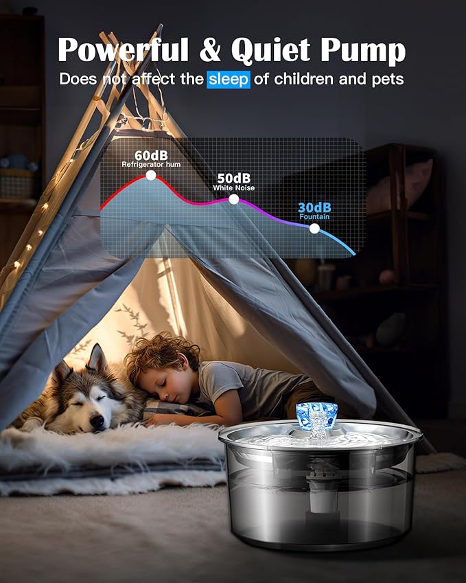 - Perfect Compatibility – Replacement dog and cat water fountain pump specially designed for lesotc stainless steel pet water fountains, fitting 3-gallon large dog water dispensers and compatible with models D2223, D2322, D2341, D2419, D2340. Pump only; fountain sold separately.