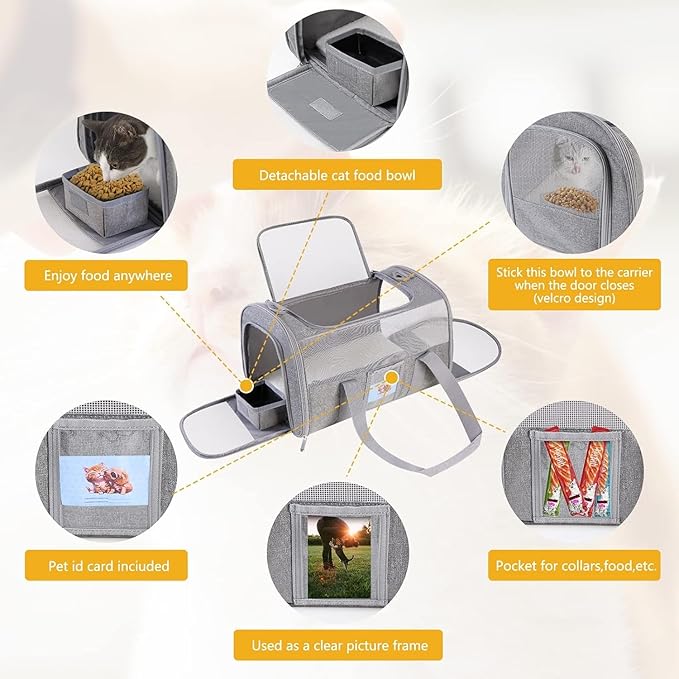 Pet Carrier TSA Airline Approved Small Dogs, Kitten, Carriers for Small Medium Cats Under 15lb, Collapsible Soft Sided Cat Travel Carrier-Grey