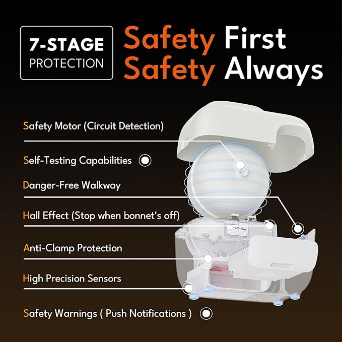 - 7-Stage Safety & 24/7 Support: SnowSafe+ technology immediately pauses cleaning when your cat enters. Backed by around-the-clock customer service for complete peace of mind.