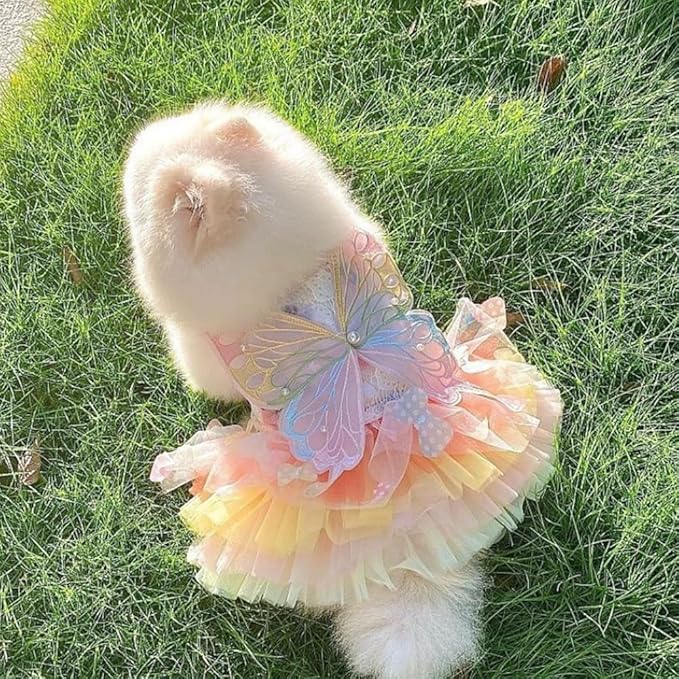 - 【Exquisite Design】: The summer cat dress features a colorful butterfly in a princess style, Big Butterfly wing and fluffy lace tutu skirt will definitely make your pet be the focus in the crowds and get many compliments