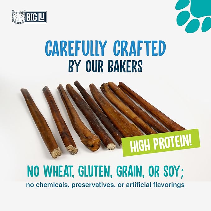 Big Lu - Bully Sticks (12” Jumbo, 10 Count) Weight-Packaged, 100% Beef Chews, Grass-Fed, Fully Digestible Treats for Keeping Puppies, Small, and Medium Dogs Busy