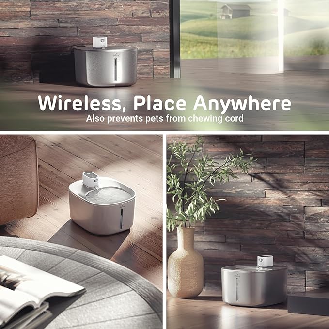 - Stainless Steel Construction: The iPettie Runway Wireless Cat Water Fountain, made of enduring stainless steel, ensures long-lasting performance and easy maintenance.