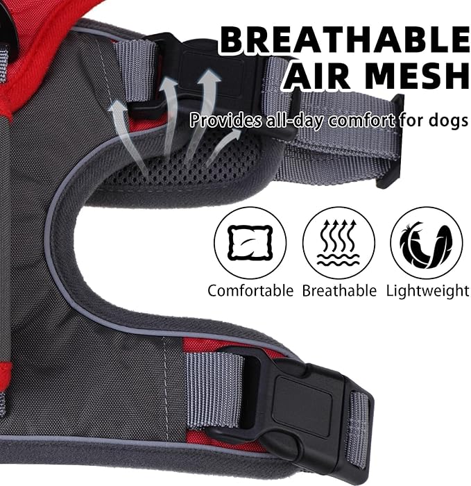 - COMFORTABLE & SAFE: High-quality webbing provides reliable strength to support your dog's activities of all intensities, and the soft, breathable air mesh has good heat dissipation to reduce friction on the fur while keeping your dog comfortable all day long. There are also reflective strips on the back of the harness and the webbing to ensure your dog's safety when walking at night.