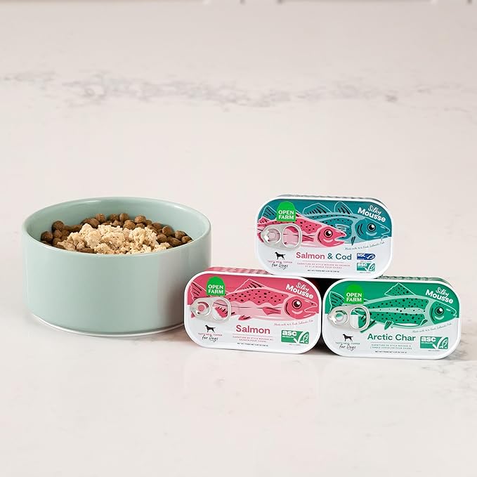 Open Farm, Canned Dog Food Topper, Silky Mousse Made with 96% Responsibly Sourced Icelandic Fish, Grain & Legume Free, Salmon & Cod Recipe, 4.59oz Cans (Pack of 12)
