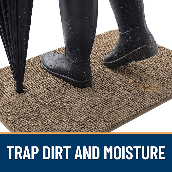OLANLY Dog Door Mat for Muddy Paws 24x16, Absorbs Moisture and Dirt, Absorbent Non-Slip Washable Doormat, Quick Dry Chenille Mud Mat for Dogs, Entry Indoor Entryway Carpet for Inside Floor, Tan