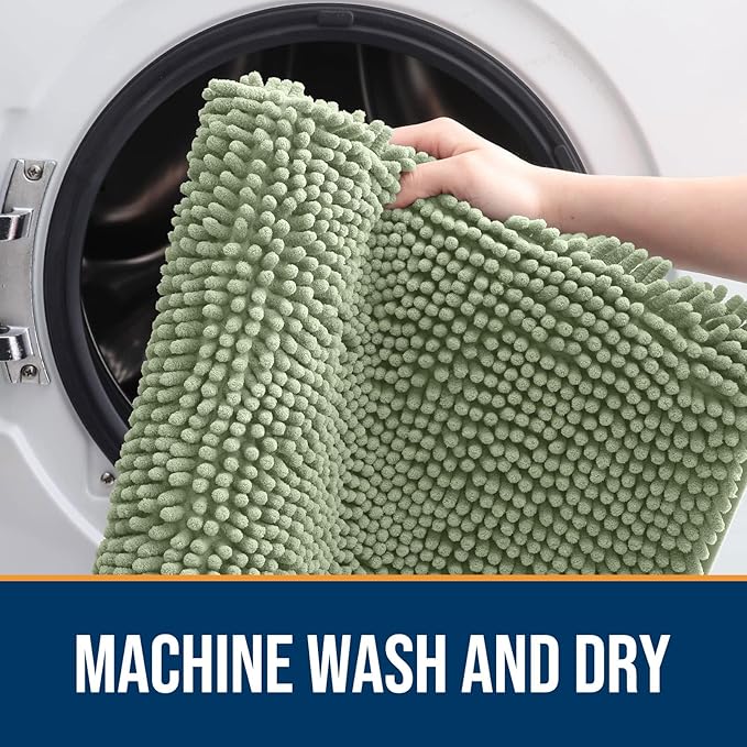 OLANLY Dog Door Mat for Muddy Paws 36x24, Absorbs Moisture and Dirt, Absorbent Non-Slip Washable Doormat, Quick Dry Chenille Mud Mat for Dogs, Entry Indoor Entryway Carpet for Inside Floor, Sage Green