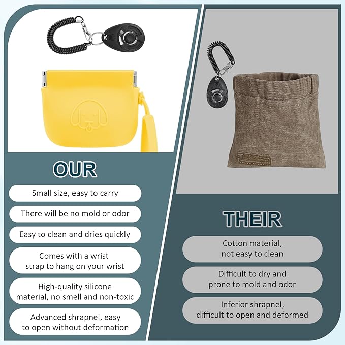 WALLFID Silicone Dog Treat Pouch Small Bag,Auto Closure,with Pet Training Clicker,Walking Bag for Dog and Cat,Pocket Size,Easy to Clean,Odorless (yellow)…
