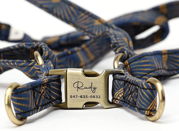 - Customizable engraving: Personalize your dog's harness with engraved details on the brass buckle, be it their name, your contact information, or any text of your choice, ensuring they're always identifiable and safe.