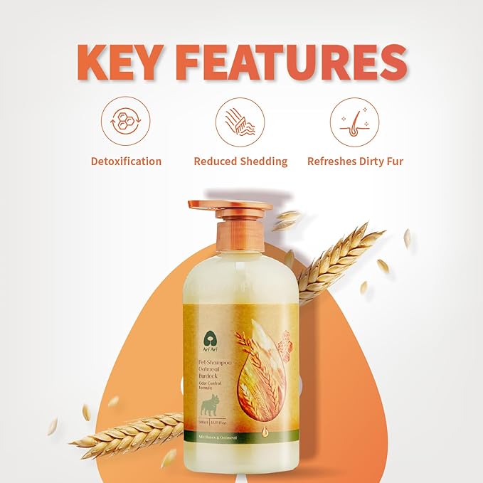 - 🌿 **Soothing Relief for Dry, Itchy Skin** ► Formulated specifically for sensitive coats, this shampoo is enriched with **Hydrolyzed Oat Protein** and **Honey Extract**. These natural ingredients work together to calm irritation, moisturize dry skin patches, and restore the skin's natural balance, making it ideal for senior dogs or pets prone to skin discomfort.