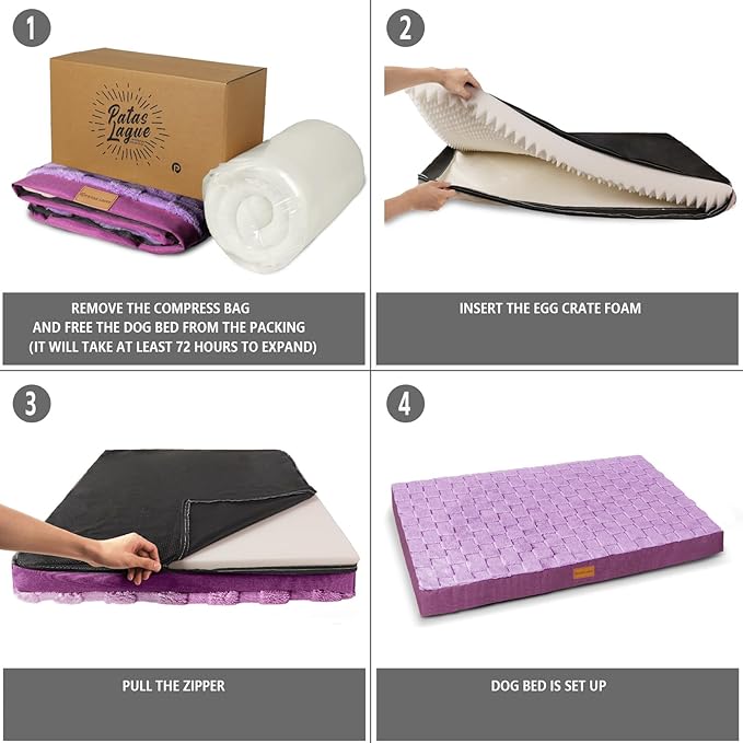 - Care Instructions: The removable cover of the dog bed is machine washable just simply machine wash and tumble dry; please note that the egg crate foam is not washable; as the foam is compressed it will take about seventy-two hours to expand