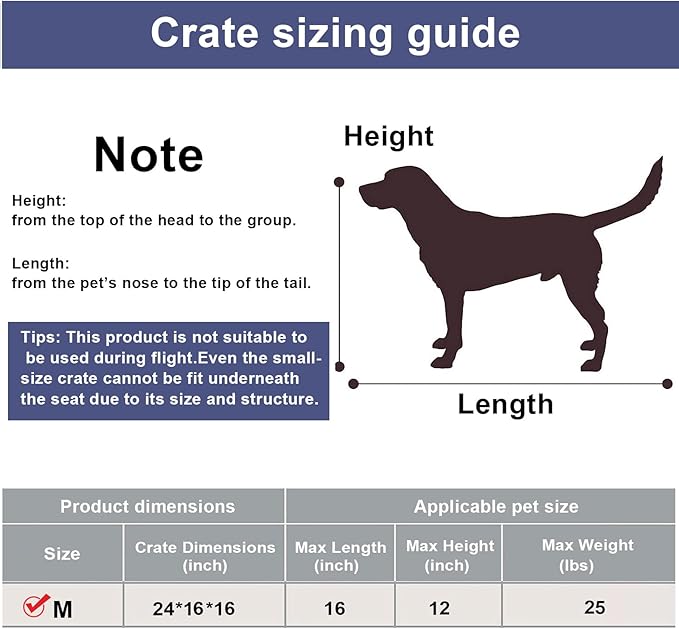 - Ideal for pets up to 25 lbs. Please check the size guide in the images to confirm the best fit for your pet. For car travel, always secure the crate with a seatbelt.