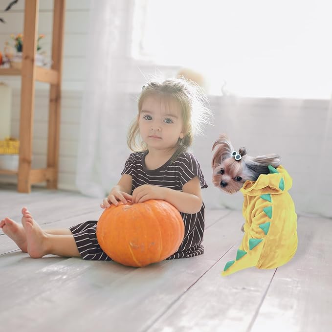 Hotumn Dinosaur Dog Halloween Costume Pet Dino Hoodie for Small Dogs (Large, Yellow)