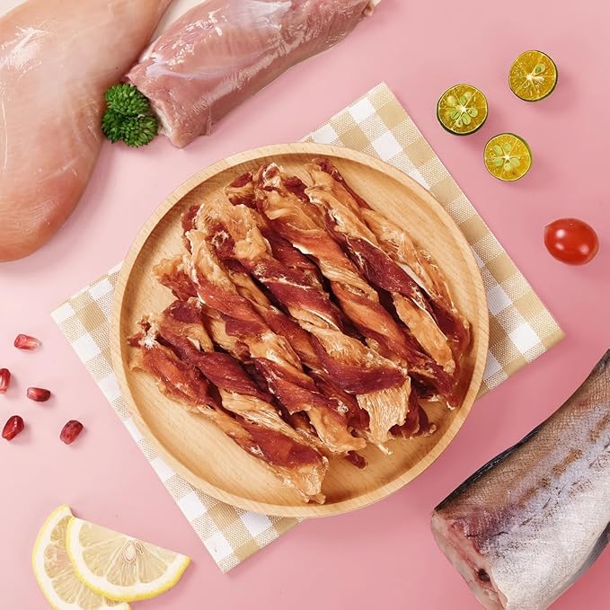 Dog Jerky Treats, Triple Flavor Chicken Duck Wrapped Cod Twisted Sticks 5'', Rawhide Free Grain Free Dog Training Snacks Chews for Small Medium Large Dogs, 10.6oz
