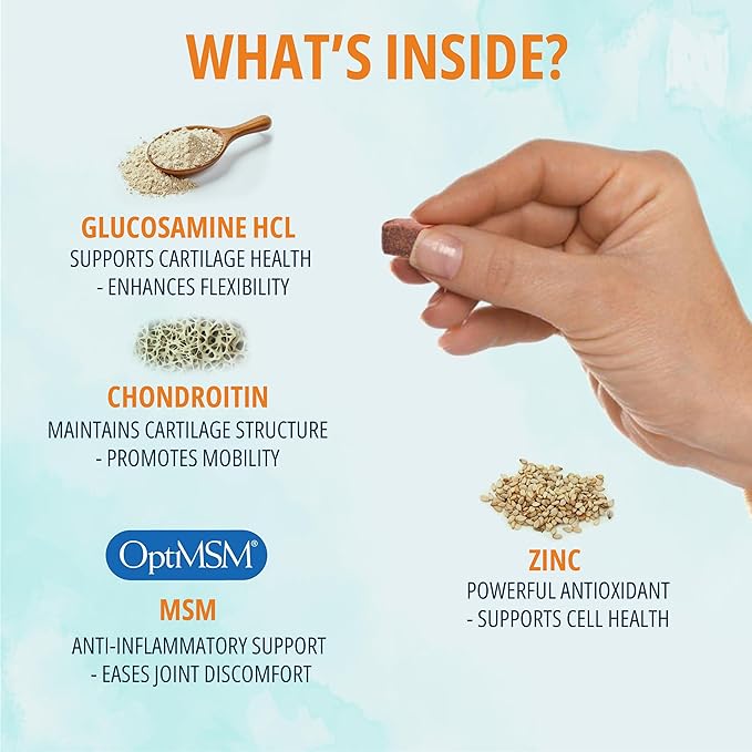- ⚙️ PREMIUM DOG JOINT SUPPLEMENT - made with a premium formula including Glucosamine, Chondroitin, MSM and added zinc and omega 3 for all-around dogs joint health.