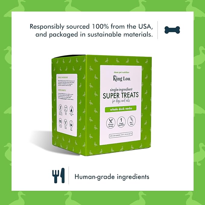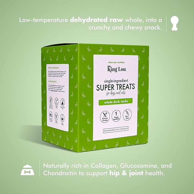 King Lou Pets - Whole Duck Necks for Dogs and Cats - Single Ingredient Dog Treat - Dehydrated Cat Treats - USA-Made Dog and Cat Treats - Supports Hip and Joint Health - 20 Count