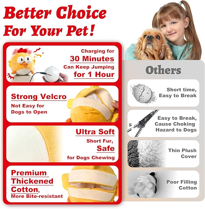 Interactive Dog Toys, Squeaky Moving Ball Toy with Jumping & Music Modes, Rechargeable Plush Chew Toys for Small/Medium/Large Dogs to Keep Puppy Busy Pet Toys (Chick)