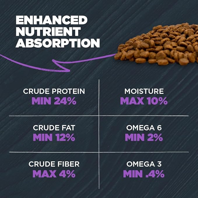 - Large Breed Diet: Formulated with Green Mussels for hip and joint health of large breeds, fortified with Prebiotics and Probiotics for GI Health and metabolism, and enriched with Vitamins & Chelated Minerals for optimal nutrient absorption