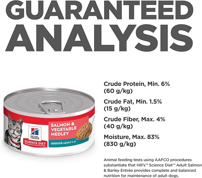 Hill's Science Diet Indoor, Adult 1-6, Easy Litter Box Cleanup, Wet Cat Food, Salmon & Vegetables Stew, 5.5 oz Can, Case of 24