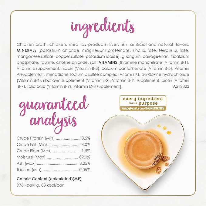 - Purina Fancy Feast cat food crafted with real chicken with no artificial preservatives or colors