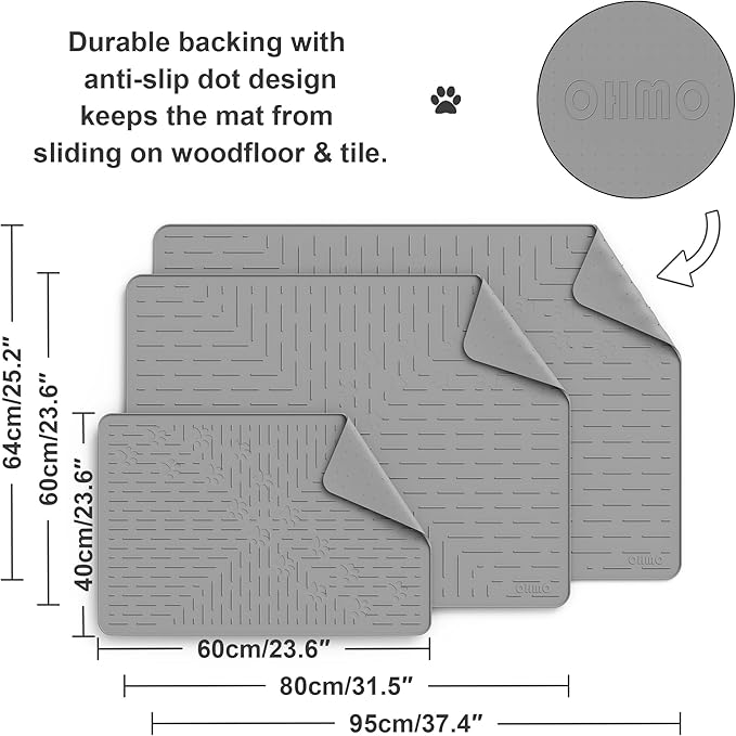 OHMO Cat Litter Mat Large Trapping Mat Premium Silicone Rubber 31.5x23.6 Grey, Waterproof and BPA Free Kitty Litter Box Mat, Easy to Clean and Keeps The Floor Tidy