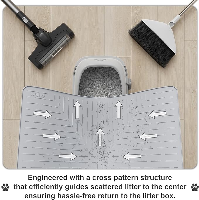 - Anti-Scatter Design: Thoughtful design with multiple raised inner ridges effectively traps litter and prevents it from scattering — helping to reduce tracking throughout your home. It protects your cat’s paws and floors, keeping both clean and tidy.