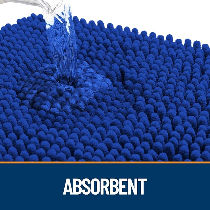 OLANLY Dog Door Mat for Muddy Paws 47x24, Absorbs Moisture and Dirt, Absorbent Non-Slip Washable Doormat, Quick Dry Chenille Mud Mat for Dogs, Entry Indoor Entryway Carpet for Inside Floor, Royal Blue