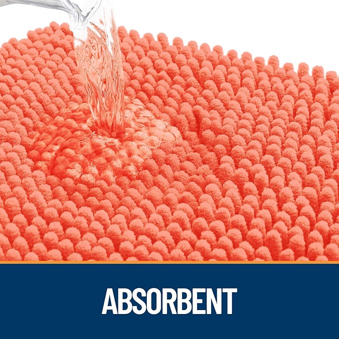 OLANLY Dog Door Mat for Muddy Paws 59x24, Absorbs Moisture and Dirt, Absorbent Non-Slip Washable Doormat, Quick Dry Chenille Mud Mat for Dogs, Entry Indoor Entryway Carpet for Inside Floor, Coral