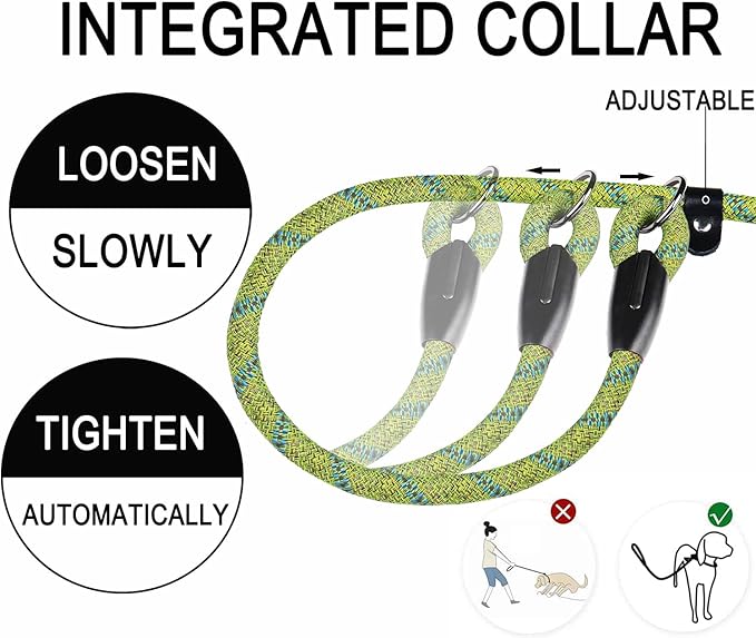 - 【LEASH & COLLAR COMBINATION】This slip leash acts as a leash and a collar in one. simply slip the loop over your dogs neck and use the handle end as a leash. leash and collar in one combination that is great for walking, running and trainning. give enough freedom to your dog and everything absolutely under your control.