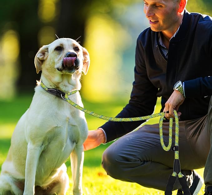 - 【NIGHT SAFE REFLECTIVE STRANDS】Our strong dog leash used the unique machine knitting technology which make us the most popular in the market. our great large dog leashes is made of ultra-durable and wear-resistant nylon rope, and stitched with reflective line along the length of the dog leash thick rope, highly visibility at night, keeps you both safe and high visibility on your late-evening walks at night.