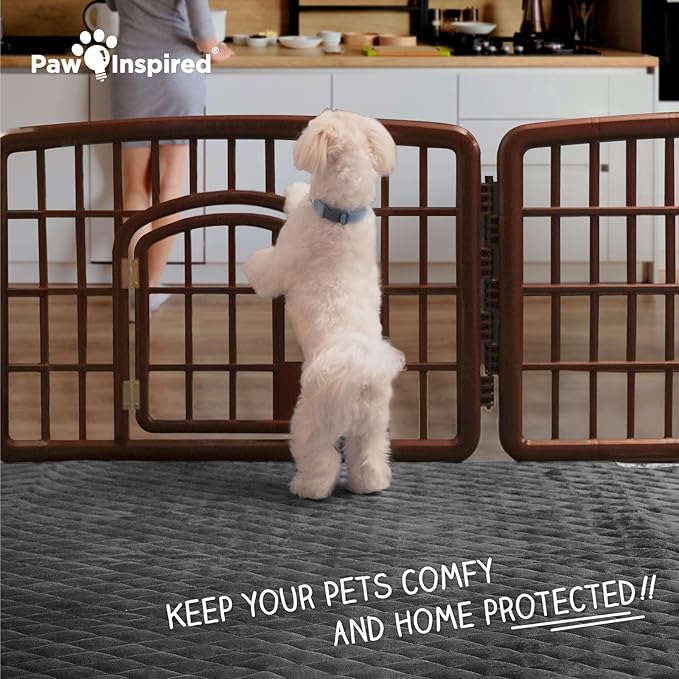 Paw Inspired 80x50 Inch Playpen Mat, Super Absorbent Fleece Cage Liner with Non-Slip Bottom, Waterproof Pet Play Pen Pad for Dogs, Rabbits, Guinea Pigs, Hamsters, Small Animals (Dark Gray)