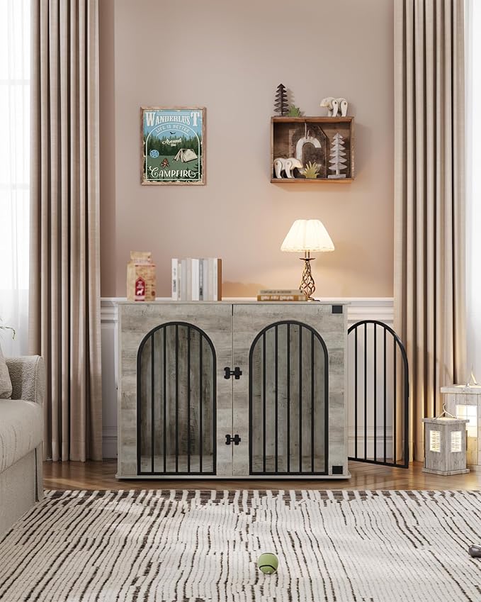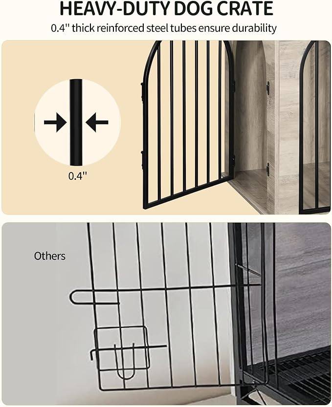 - Unique Arch Door: Our furniture dog crate adopts a novel arch design, which blends in with many modern furniture styles. The elegant style of the arch creates a clean, tidy and comfortable living environment for you